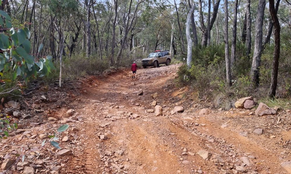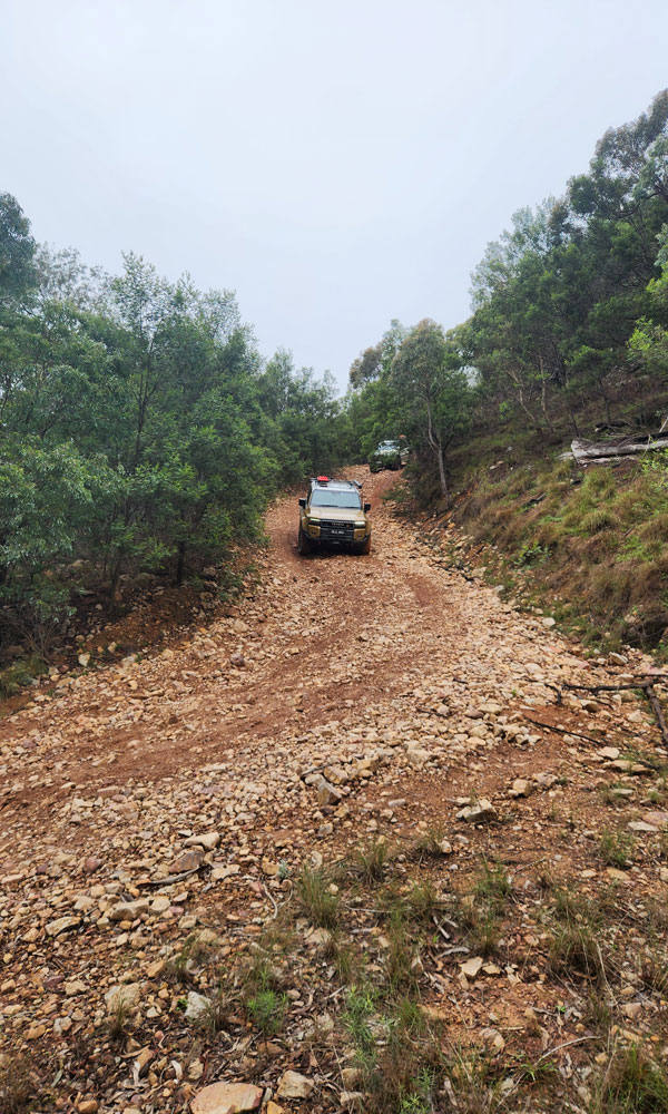 We pushed on to Dingo Hill Track via Scrubby Hill Track. Deep down, we were keen to experience this track, as it had been many years since any of us had driven it. Did it disappoint? Not at all. There were enough “fun” sections on the descents, with tight switchbacks, to keep us all on our toes (or with some fancy crawl control enabled).