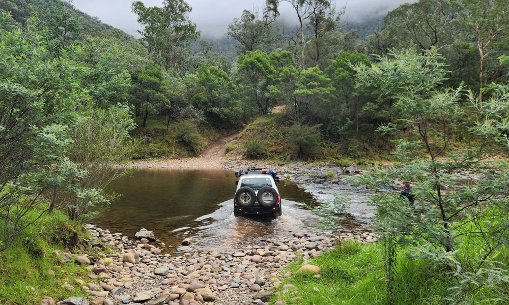 The Erica Recreation Reserve was the designated meeting point. There were tell-tale signs of the overnight rain, with low cloud still visible. That did not at all diminish the excitement of a Victorian High Country 4WD adventure. Colin ran through the trip leader briefing and before long, we were heading towards Junction Hut and Donnelly Creek Track. The plan for the first day was to reach the Macalister Gorge and the beginning of Burgoynes Track.