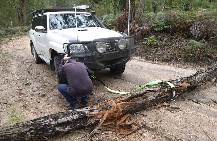 At 10:30 am, after a most professional trip briefing by our trip leader, the convoy began the process of leaving the camp ground one at a time behind the closed barrier. Heading towards Orbost, we turned left and right many times along many roads. We detoured around a tree on the track only to come across a second large log requiring Colin’s chainsaw to break it sufficiently for Pete to attach a strap to the larger part and drag it off the road. Colin and Wayne completed the final push required to make it safe to pass. As we were completing the task, two motorbike riders passed the convoy on the left and would have hit the log at the speed they were travelling if we hadn’t moved it out of the way. It was a job well done!