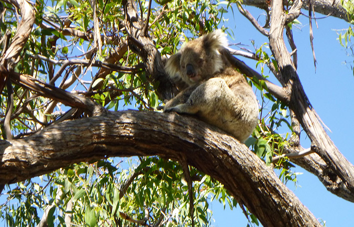We lunched at the Paynesville bakery before crossing on the ferry to Raymond Island and wandering through the Koala Sanctuary where several sleepy koalas were spotted. We then drove around the northern part of the island along Gravelly Point Road. Much of this part of the island is covered in natural bush.