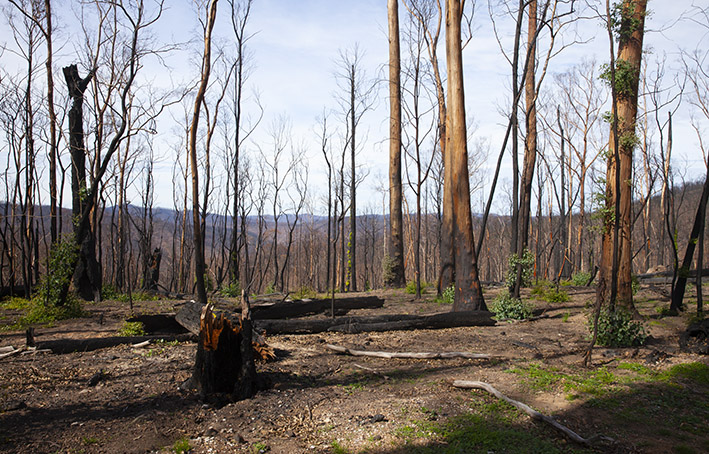 Heading out of town, we followed some gravel tracks that took us to One Tree Lookout. The route took us through several severely burnt sections of forest and farmland. From the lookout we had a 360º view and as far as the eye could see, in every direction, everything was burnt.