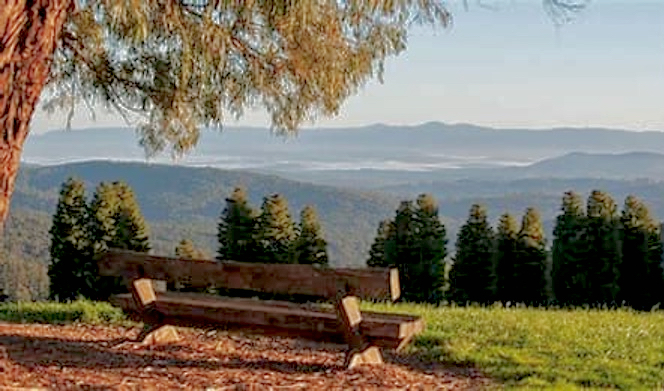 Next, we turned right onto Woolrich road, then left to see the Woolrich Lookout, with great views across the Yarra Valley. This area is the R.J. Hamer Forest Arboretum, in Olinda. Although it was originally a pine forest, it now includes pines, eucalyptus, sequoia, birches, maples, oaks, and Japanese cedars.